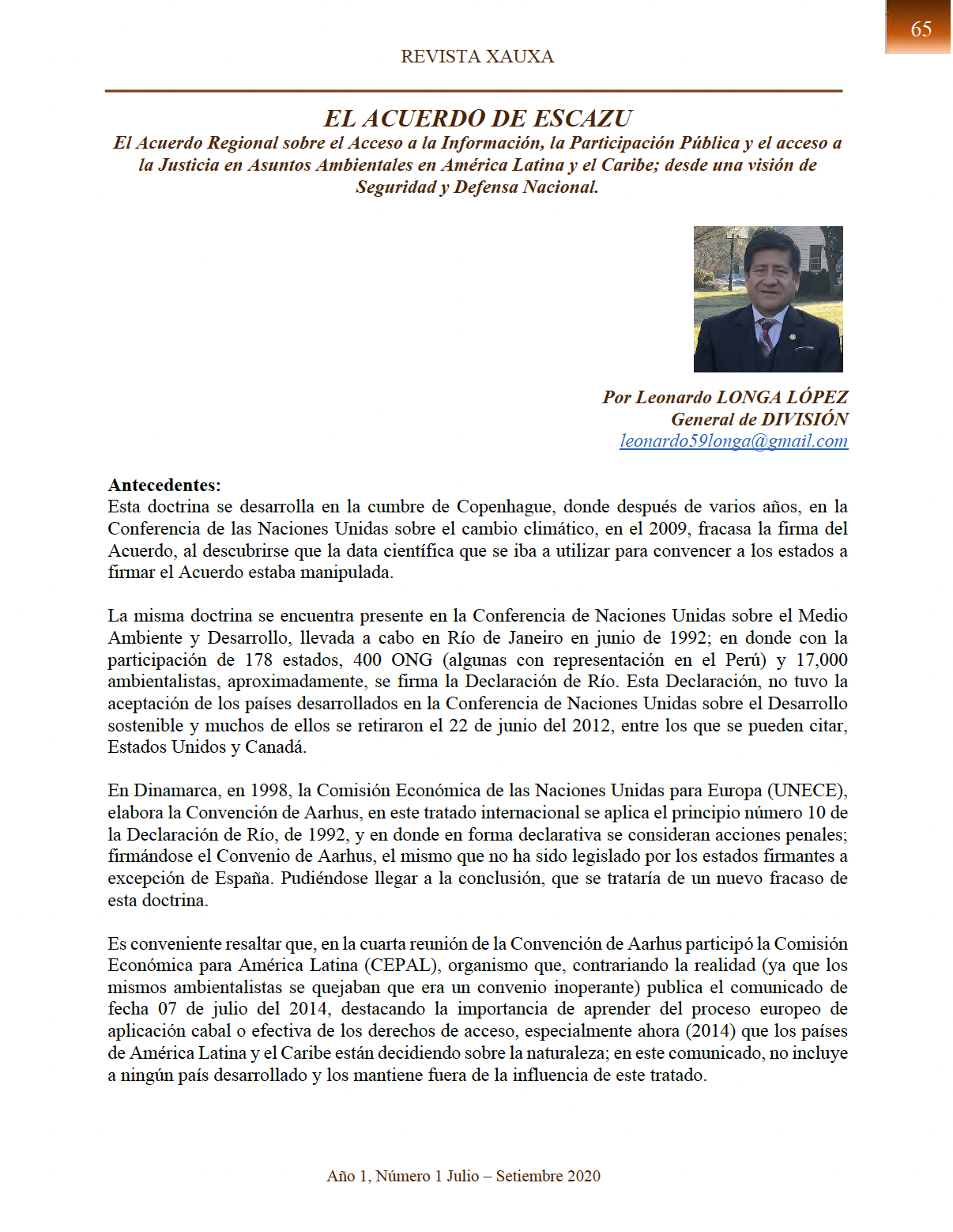 Palabras claves: Acuerdo de Escazú, Naciones Unidas, ONG’s, Medio Ambiente, Soberanía.