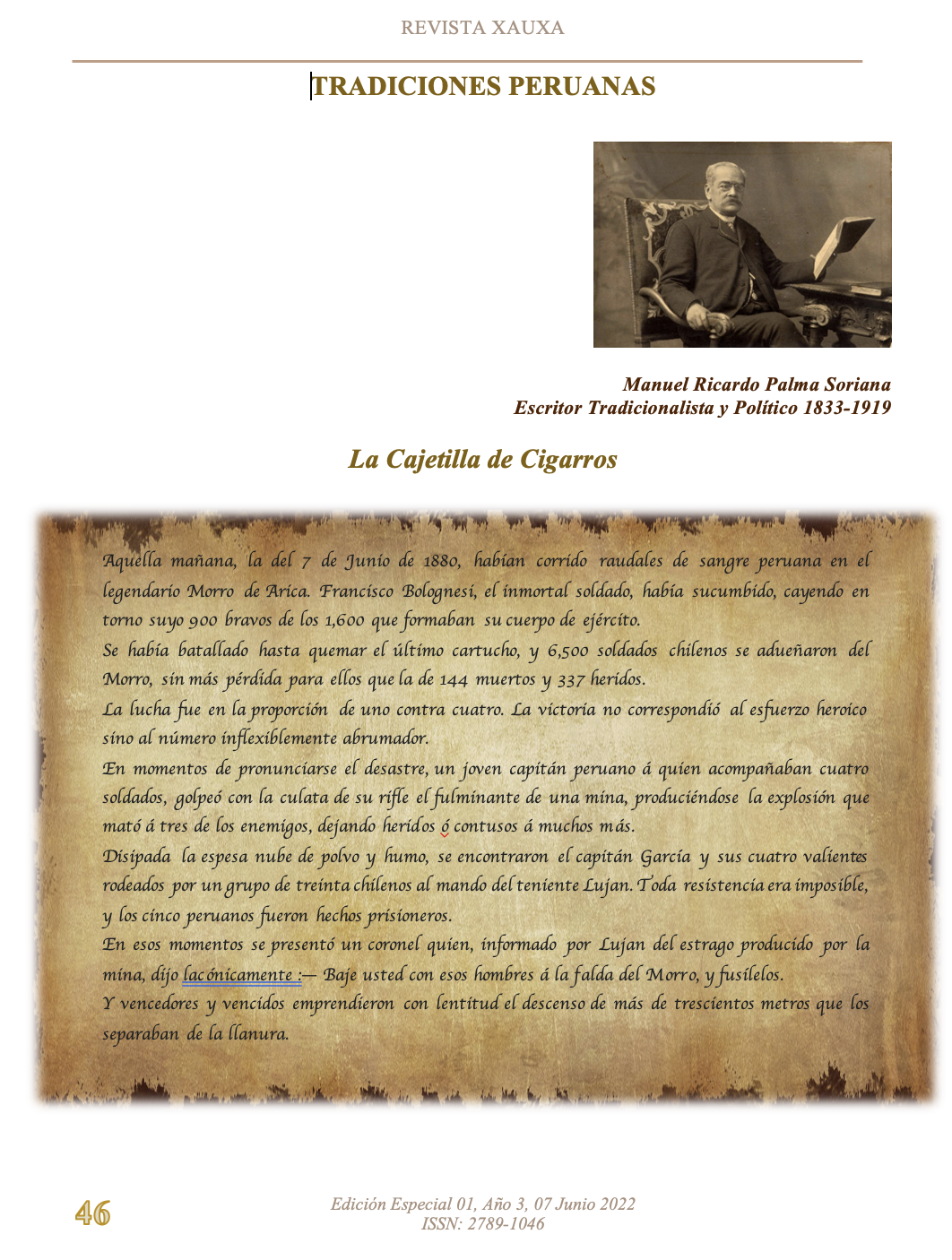 Abstract: That morning, June 7, 1880, torrents of Peruvian blood had flowed in the legendary Morro de Arica. Francisco Bolognesi, the immortal soldier, had succumbed, falling around him 900 brave men of the 1,600 that made up his army corp.