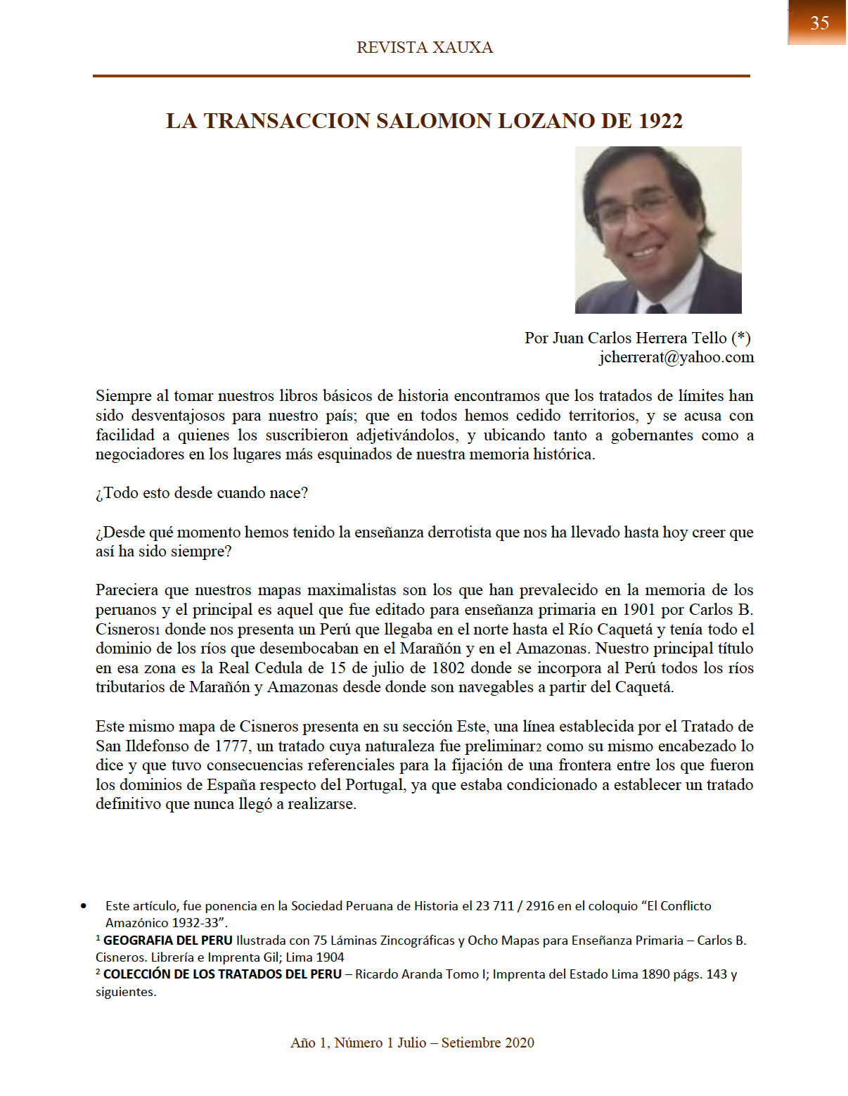 Artículo N° 05 de la Revista Xauxa N° 01, Año I
